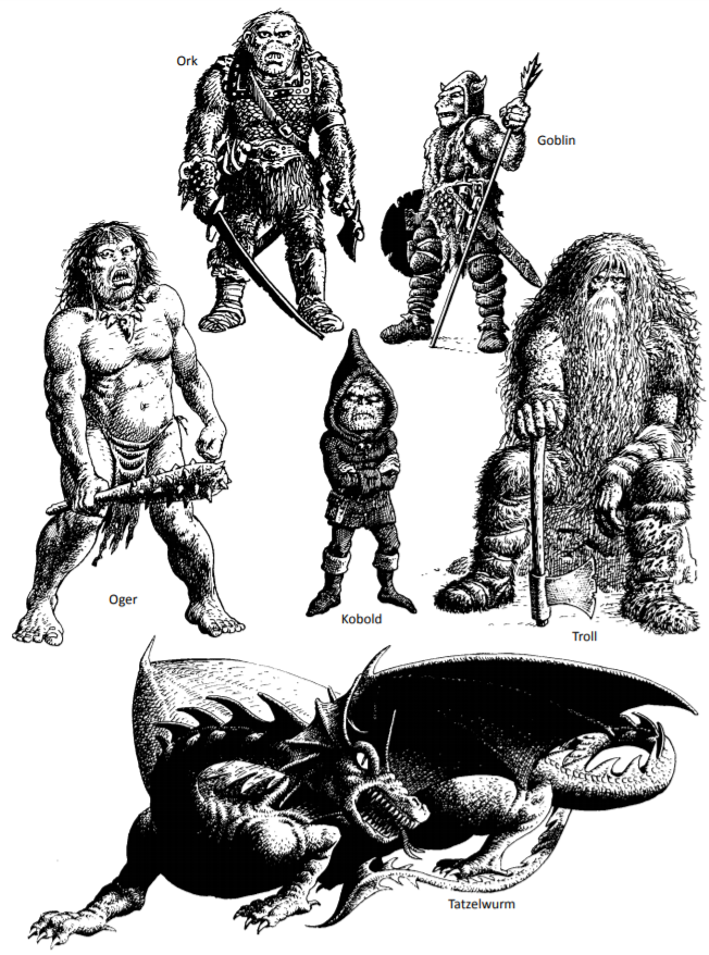 | A group of monsters from the first TDE rulebook (source: Ulisses) |